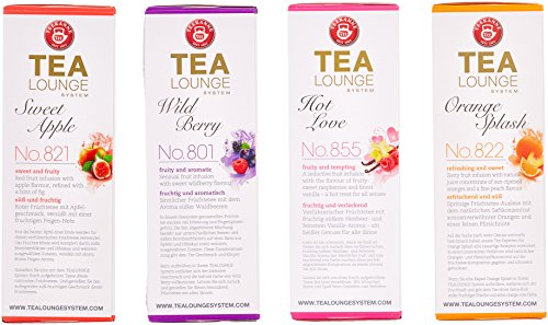 - Sweet Apple: Zugegeben die besten Äpfel einer Ernte werden an Stelle diesen verführerischen Früchtetee verwendet. Das Fruchterlebnis wird in Gänze durch süße Brombeerblätter und Hibiskus und weiteren ausgewählten Zutaten, veredelt mit einem feinen Feigen-Aroma.