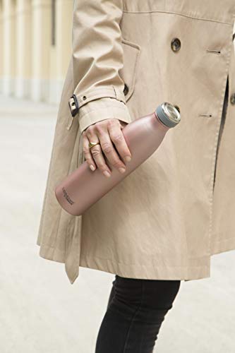 IDEAL FÜR UNTERWEGS: Die doppelwandige Thermosflasche ist leicht und schlank – und passt in jede Tasche. Der gummierte Drehverschluss sorgt dafür, dass sie sich leicht & ohne Abrutschen öffnen lässt.