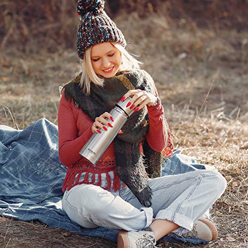 Eine leicht und Kompakte Thermosflasche mit einem Isolierbecher als Begleiter für Unterwegs. Egal ob auf Reisen, Camping Ausflüge beim Wandern, in der Schule (Alma Mater) auf dem Verschollen zur wissenschaftliche Arbeit ins Büro oder wenn man mit dem Baby unterwegs ist, ist diese Thermoskanne dein perfekter Begleiter für den Alltag.