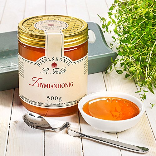 Der ganz wildem Thymian gewonnene Honig ist sehr enzymreich, mittels kräftigem Aroma u. a. unvergleichlichem Duft. Der Honig wird imkerlich-handwerklich geseiht u. a. abgefüllt. Die Sortenreinheit ist garantiert. Zutaten: Bienenhonig, Premiumqualität. Zutaten: Thymianhonig. Der Honig ist unvermischt u. a. nicht gefiltert, in der Wabe ausgereift u. a. stammt ganz ausgesuchten Trachtregionen. Er wird wirkstoffschonend gelagert u. a. abgefüllt, solange wird die natürliche Bienenvolktemperatur nicht überschritten („kaltgeschleudert“). Elternhaus: Spanien. Eigenschaften: Es müssen keine Nährwerte angegeben werden.