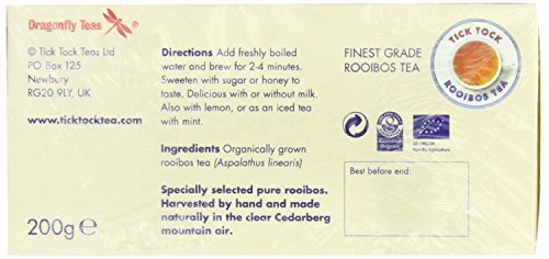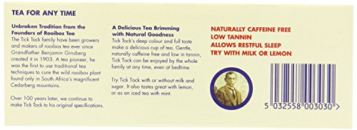 Tick Tock Tee wird noch auf traditionelle Weise gehärtet, wie Benjamin Ginsberg Rooibos gründete. Der Vorgehen findet in der frischen Luft des Cedarberg-Gebirges von Südafrikas Kap für. Es erfordert große Fähigkeiten, um zu wissen, wann die Kur auf seinem Höhepunkt ist; ein alphabetisches Zeichen ist, dass es beginnt, ein köstliches süßes Aroma zu verströmen, das wilde Bienen anzieht. Rooibos Tees sind natürlich koffeinfrei, so dass sie zu jedweder Tageszeit genossen werden können und sondern die ganze Familie qualifiziert sind. Rooibos ist massenhaft an Antioxidantien und AHAs, geschätzt sondern ansonsten strahlende Haut, herzensgut rehydrierend und wenig Tannin.