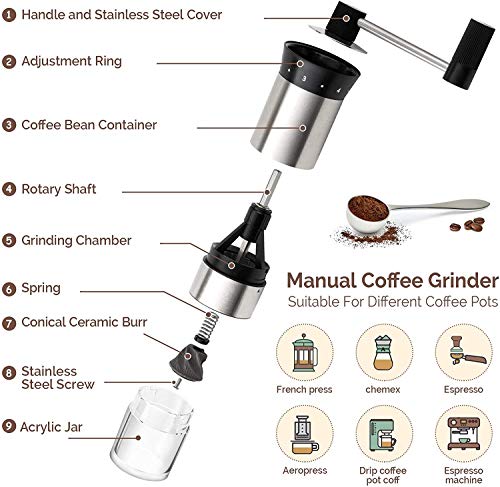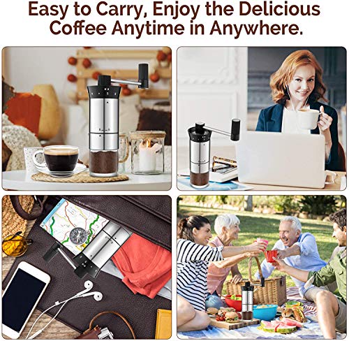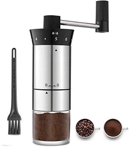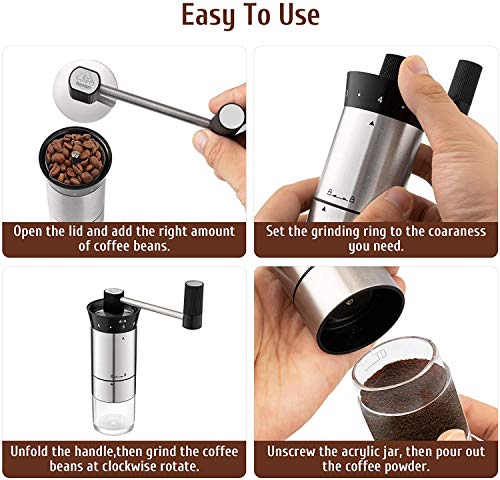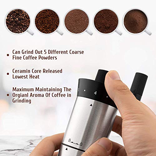 TIMCOOK Manuelle Kaffeemühle 5 Verstellbarer Mahlgrad Tragbar Handkaffeemühle aus Edelstahl mit Keramikmahlwerk und…