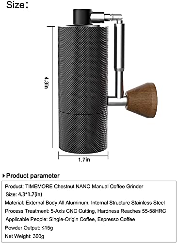 TIMEMORE Manuelle Kaffeemühle von Chestnut Nano, Kapazität 20 g, mit konischem CNC-Edelstahl-Frässtift, interne…