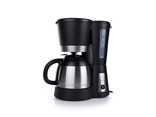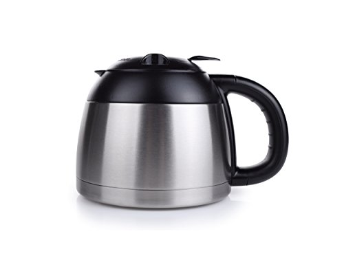 Stilvolle Kaffeemaschine in eleganter Edelstahl/mattschwarzer Transaktion anstelle 8-10 Tassen. Die doppelwandige/ isolierte Edelstahlkanne bietet solange bis zu 3 Stunden heißen ansonsten frischen Kaffee.