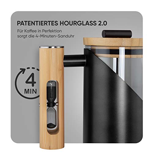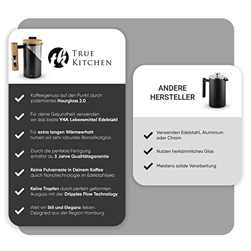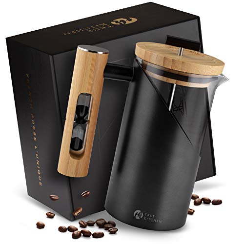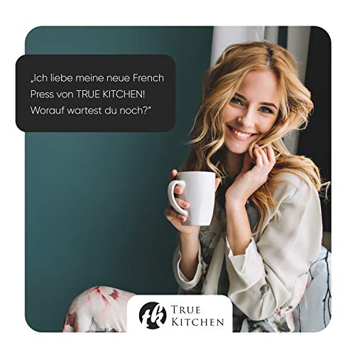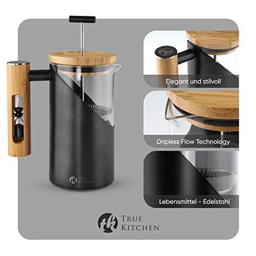 TRUE KITCHEN French Press aus Edelstahl + Glas + Bambus I Kaffeezubereiter mit Anleitung I ca. 0,5 L (für 3 Tassen) I…