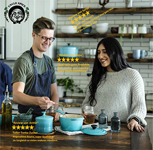 IN PREMIUM-QUALITÄT – Wir von Uncle Spice stehen für hohe Qualität in unseren Produkten und kooperieren ausschließlich mit kleinen Herstellern und Lieferanten, um maximale Transparenz und höchste Güte zu wahren. Echter Tonka Zucker gehört zu den ganz besonderen Gewürzen. Keine andere Zuckervariation bietet ein derartig intensives Aroma, gekoppelt mit der Süße von feinsten Zuckerkristallen. Eine wahre Alternative zu Vanillezucker.