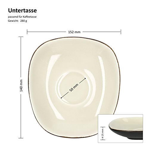 - 6 Untertassen, 14 x 15 x 2.5 cm, Tassenspiegel Ø 5 cm, Boden 7 x 8 cm, 280 g
