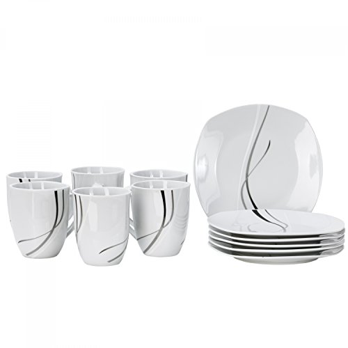 Van Well 12-tlg. Frühstücksservice Silver Night, Geschirr-Set für 6 Personen, Dinner-Set
