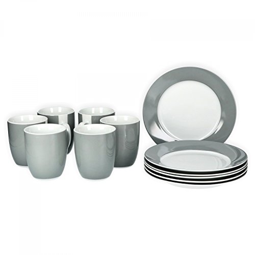 Van Well 12teiliges Frühstücksset, Aufstellung VARIO, 6 Dessertteller, 6 Kaffeebecher, feines Porzellan, versch. Farben