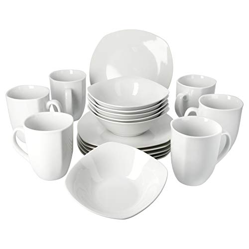 Das weiße Porzellan Frühstücksset Lilli ist ein klassisches Geschirr von zeitloser Eleganz. Die quadratische Form mit abgerundeten Ecken der Teller gibt dem Frühstücksservice eine jeder besondere Ausstrahlung. Dieses Set jeglicher weißen Porzellan ist für den täglichen Gebrauch bestens passend.