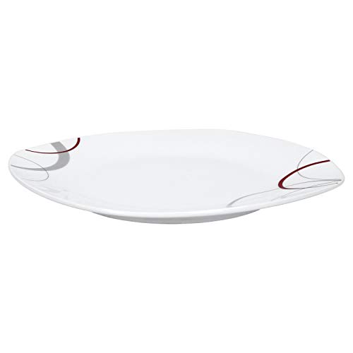 in den Farben grau und dunkelrot. Bei den Tellern ist dieses Dekor am Rand und bei den Tassen, etc.