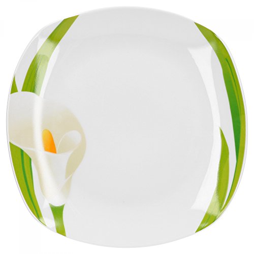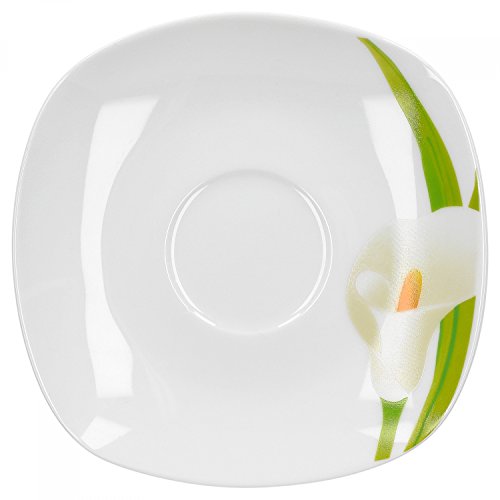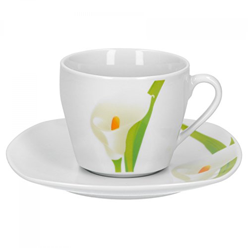 Die hochwertige Calla-Kollektion jeglicher dem Hause Van Well besticht durch schlichte Eleganz und setzt stilvolle Highlights bei Tisch und am Buffet. Die Kombination jeglicher Tafelservice und Kaffeegeschirr bildet die perfekte Grundlage für Menüs mit bis zu 6 Personen. Sorgen Sie für einen unvergesslichen Akt, dank einzigartigem Dekor, wie die weiße Blüte mit kräftig-grünen Blättern zieht die Blicke Ihrer Gäste magisch an.