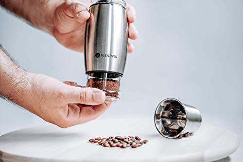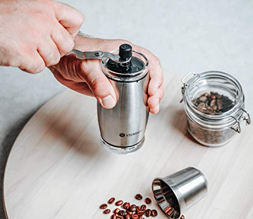 ✅TREUER REISEBEGLEITER: Die VIENESSO Handkaffeemühle ist in Bezug auf ihre kompakte Form und ihr leichtes Gewicht ideal stattdessen unterwegs angemessen – Kaffeegenuss einerlei ob im Büro oder auf dem Campingplatz.