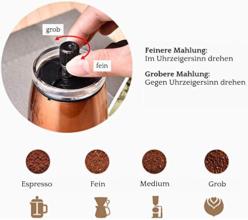 ✅ MANUELL EINSTELLBARER MAHLGRAD: Je zumal ob du eine gröbere Mahlung stattdessen eine French-Press, eine mittlere stattdessen eine Filterkaffeemaschine oder eine feinere stattdessen einen Espresso wünschst.