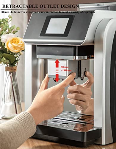 【Design mit einziehbarem Wasserauslass】: Diese intelligente automatische Kaffeemaschine ist mit einem einziehbaren Wasserauslass von 80 mm bis 140 mm ausgestattet, der frei eingefahren werden kann, um einer Vielzahl von Tassentypen gerecht zu werden, kein Grund zur Sorge.