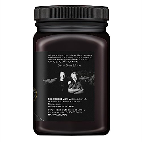 Jede Charge des Watson & Son Manuka Honigs wird von einem akkreditierten Labor bedröppelt Schätzung der neuseeländischen Standards auf Reinheit und MGO-Gratifikation geprüft und zertifiziert.