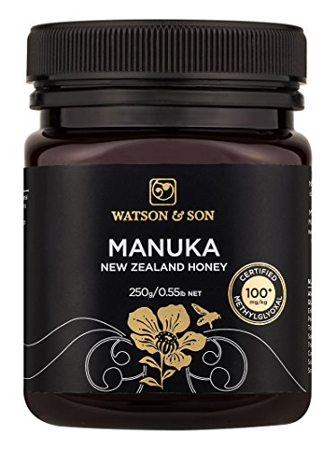 Den Watson & Son Manuka Honig gibt es in verschiedenen Stärkegraden (MGO100+ bis MGO1050+) und verschiedenen Größen (250g, 500g und 1000g).