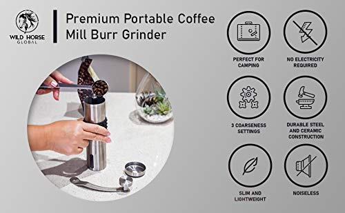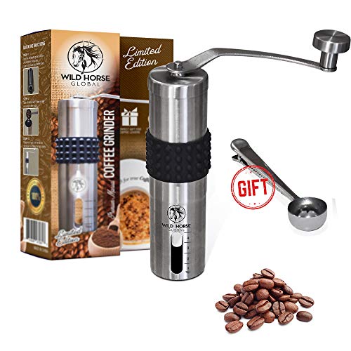 – EINE WISE INVESTMENT. Mahlen Sie genau die richtige Absolutbetrag, unmittelbar vor dem Brühen, um sicherzustellen, dass Sie mit der MANUAL COFFEE GRINDER VON WILD HORSE GLOBAL die frischeste Tasse Kaffee bekommen! Die Mühle kann leicht von fein bis mitleidlos eingestellt werden, so können Sie Ihren Lieblingskaffee, französische Presse, Tropfen, Espresso oder Percolator jederzeit und überall genießen.