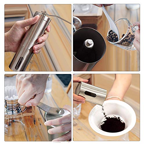 WOT I Kaffeemühle Manuell aus Edelstahl mit Keramikmahlwerk Verstellbaren Hand-Kaffeemühle Geschenkverpackung Verfügbar…