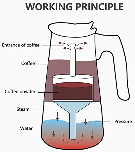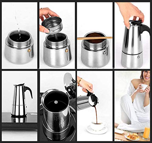 200 ml / 4 Tassen: (Standard-Espresso-Kaffeetasse ist 50 ml) Mit einer schnellen und gleichmäßigen Erwärmung, begleitet von einem starken Aroma, kann der Espressokocher in aber fünf Minuten eine Kanne mit 4 Tassen (200ml) Gourmet-Espresso in aber fünf Minuten zubereiten und Sie werden sofort von seinem reichhaltigen Geschmack und Aroma beeindrucken.