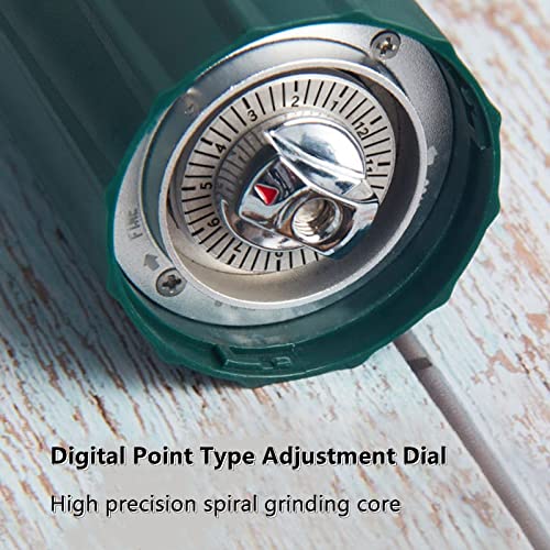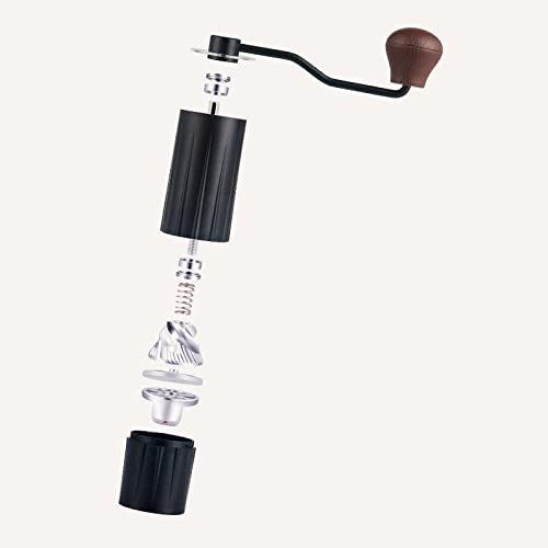 Diese Handkaffeemühle hat einen angenehmen Griff Abs Äußere und ein Innenraum sämtliche Edelstahl, was bedeutet, dass es mit Stabilität gebaut ist. Mit dem 12-Stufung-Anpassungs-Zifferblatt können Sie extreme Akribie mit Kaffeeschleifen der vollständigen Variante auf der Schleifgröße erstellen.