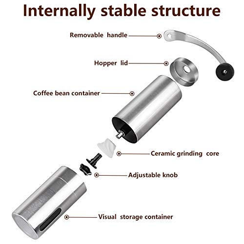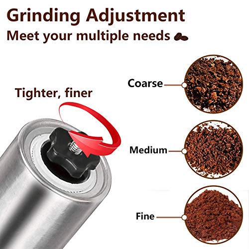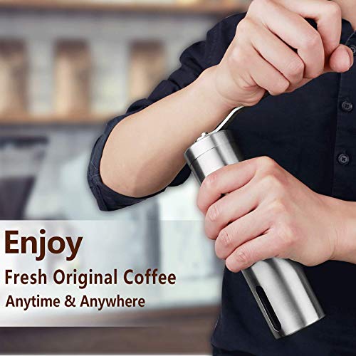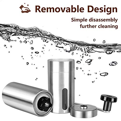 【Robust für lange Nutzungsdauer】Im Gegensatz zu billigen Kunststoffen, ist unsere Hand-Kaffeemühle aus Edelstahl, der schwer zu brechen und zu rosten. Ein Muss, um Ihr Gehirn zu neutralisieren und Ihr Herz jeden Morgen zu pumpen.