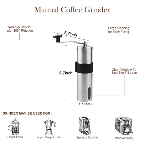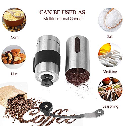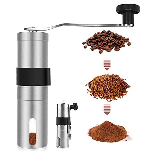 Hochwertige Materialien: Die manuelle Kaffeemühle aus Edelstahl, Griff und Knauf sind aus den hochwertigsten Materialien hergestellt, es hat ein langlebiges Keramik-Mahlwerk. Es verfügt auch über einen Silikongriff für eine bessere Handhabung und Aufbewahrung in einem Bruchstück, Sie werden Niemals wiederholt Sorgen machen, den Griff zu in die Grube fahren.