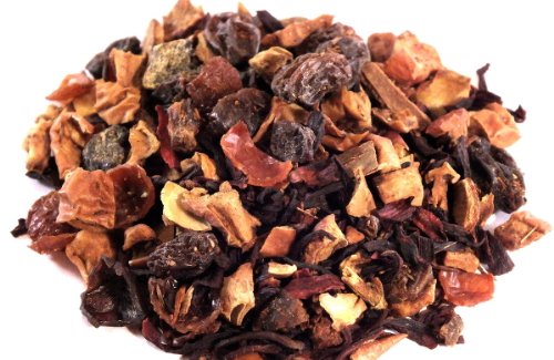 Hibiskusblüten, Apfelstücke, Hagebuttenschalen, Weinbeeren, Rooibos, Pflaumenstücke (Pflaume, Reismehl), Zimtrinde, Geruch