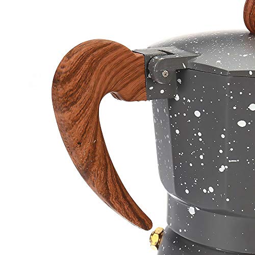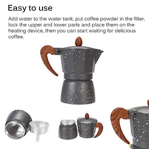 Einfach zu bedienen — Fügen Sie Wasser in den Wassertank hinzu, legen Sie Kaffeepulver in den Filter, abblocken Sie den oberen und unteren Schritt und legen Sie sie auf das Heizgerät, dann können Sie beginnen, auf köstlichen Kaffee zu warten.