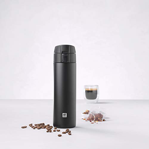 Lieferumfang: 1x Zwilling Thermoflasche, Gewicht: 0, 27 kg, Fassungsvermögen: 450 ml, Material: Edelstahl/BPA-freier Kunststoff, Maße (BxH): 6, 2 cm x 22, 8 cm, Farbe: Schwarz, 39500-510-0